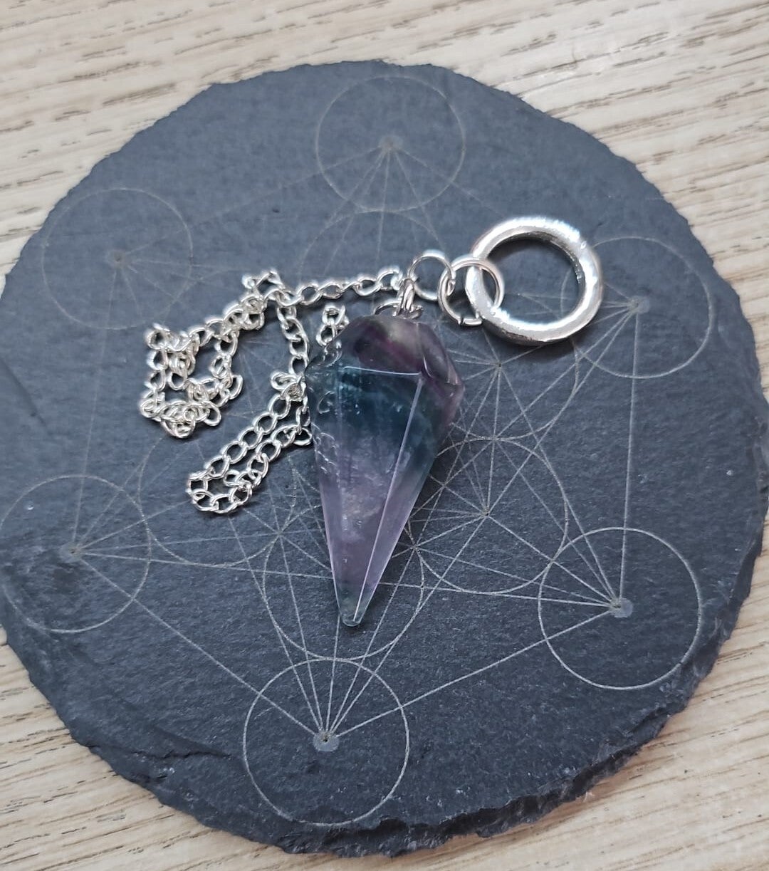 Pendolo in Fluorite, promuove la chiarezza mentale,la concentrazione e la stabilità emotiva,protegge da energie negative