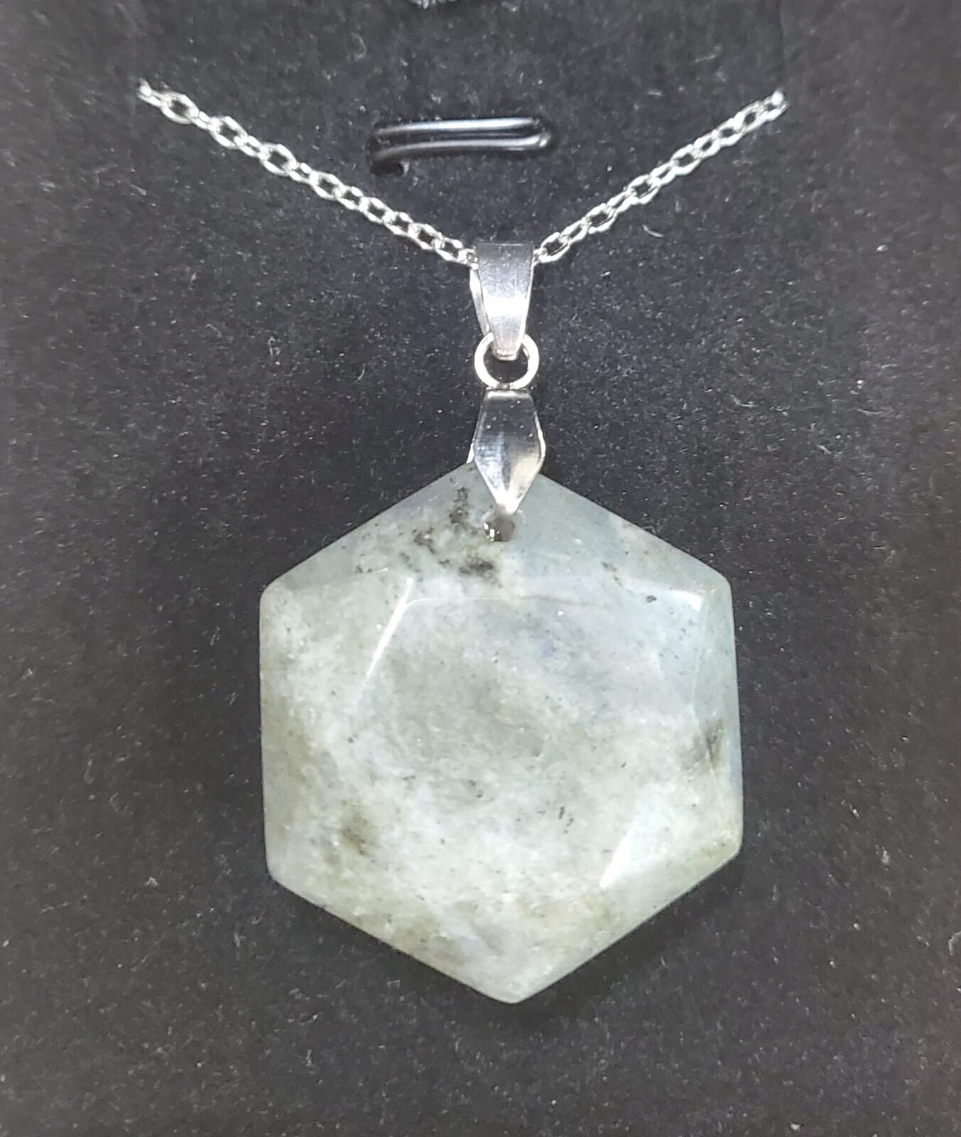 Collana con ciondolo esagonale Labradorite in acciaio free nichel